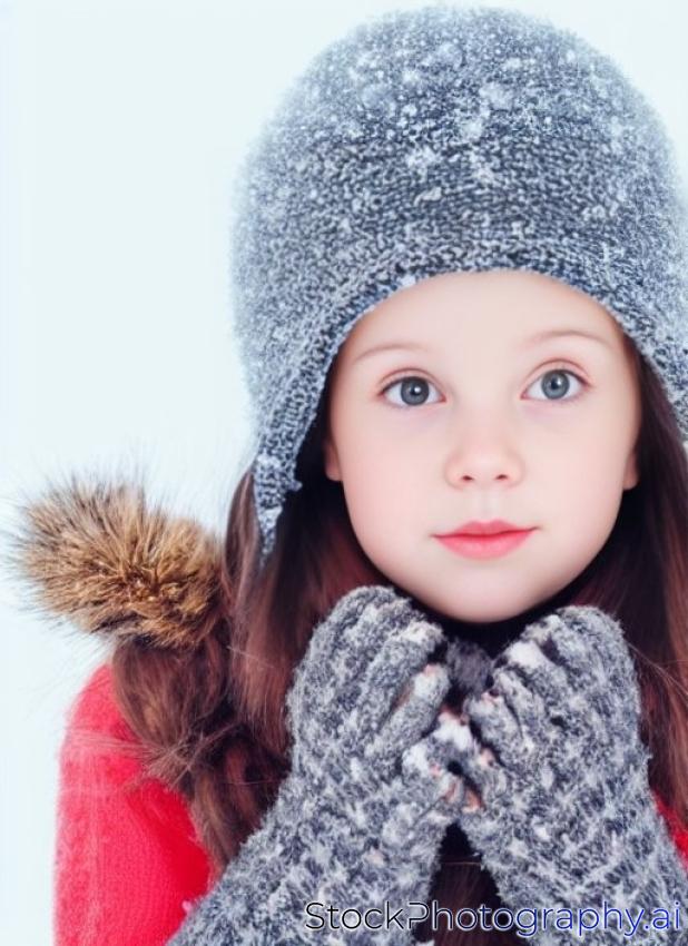 young girl in winter outfit heaving cold over white background