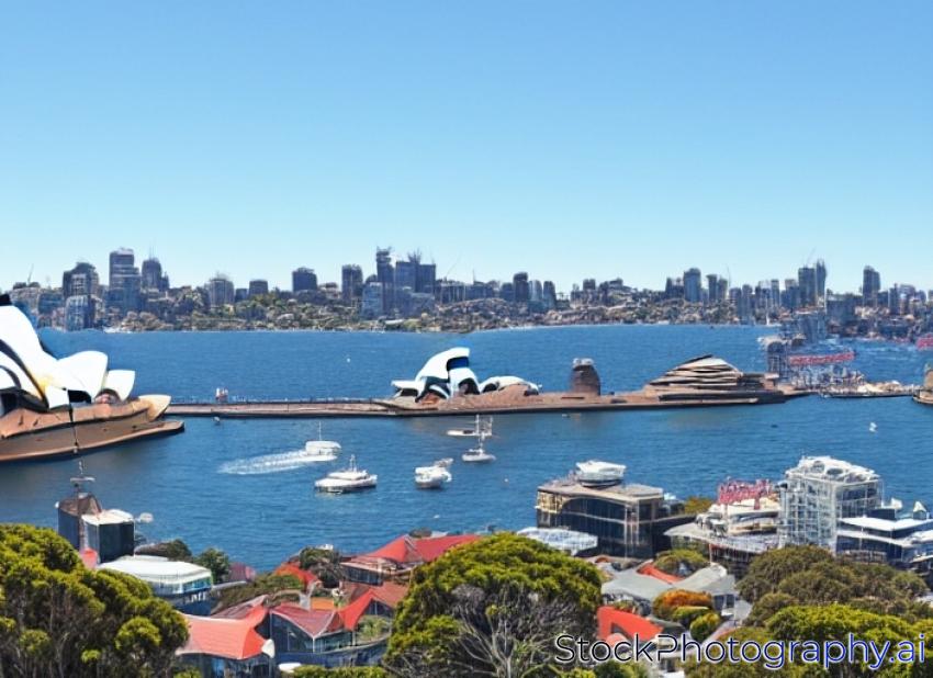 A clear sunny day in Sydney, looking east towards the harbour and ocean.