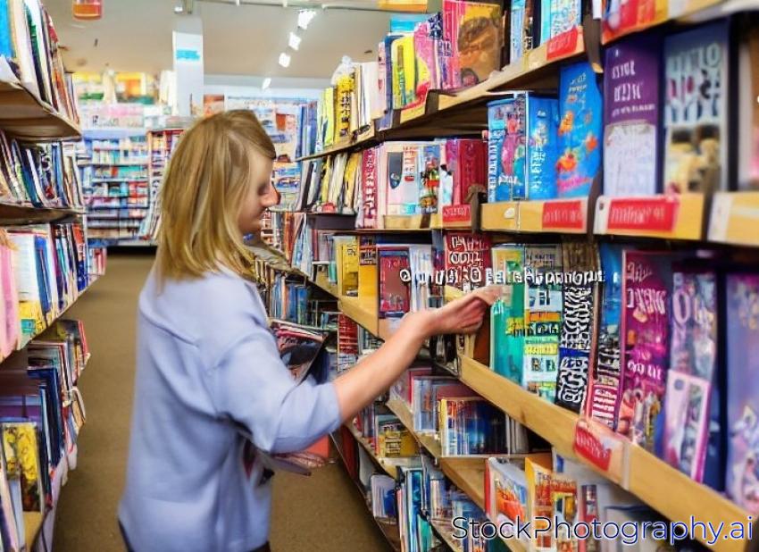 CAMBRIDGE,CAMBRIDGESHIRE,UK - CIRCA JUNE 2016: Woman seen putting back a mini holiday guide book on the shelf in a well known British newsagent and book store.
