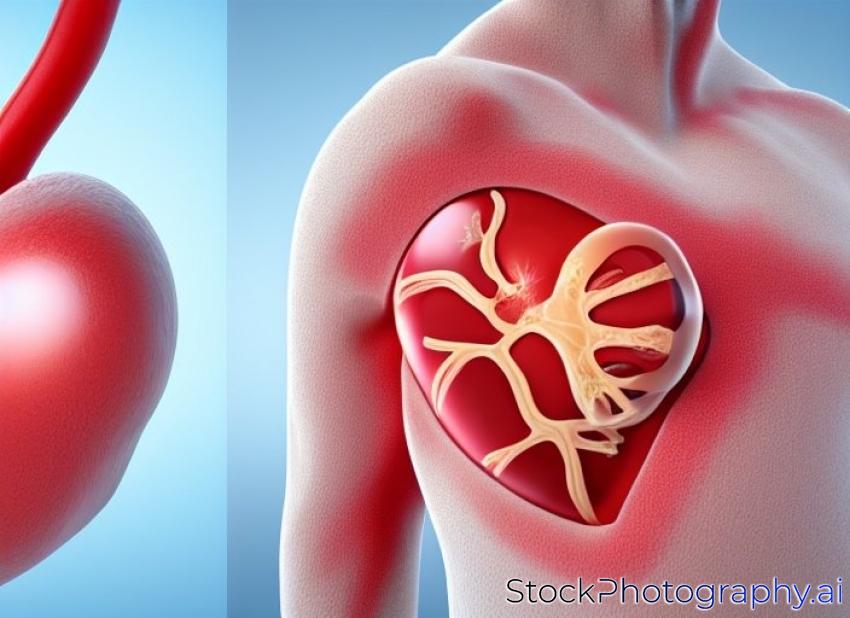 Cholesterol formation, fat, artery, vein, heart. 3d rendering