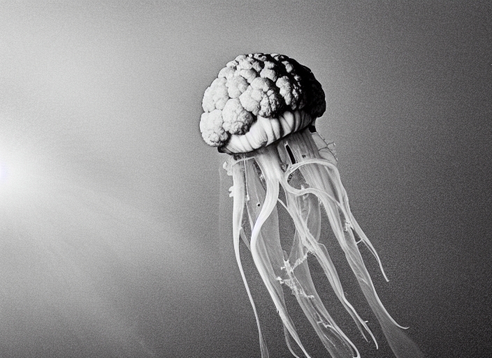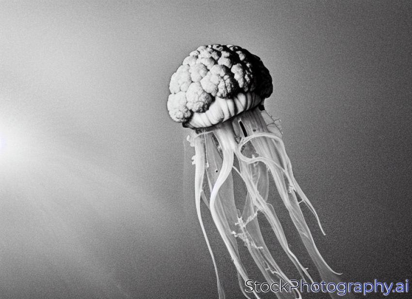 A crowned, or cauliflower, jellyfish with the black night sea as a backdrop