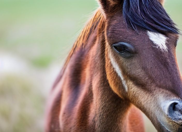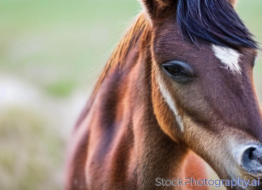 A closeup portrait of a pregnant wild pony on Shackleford Island, NC.