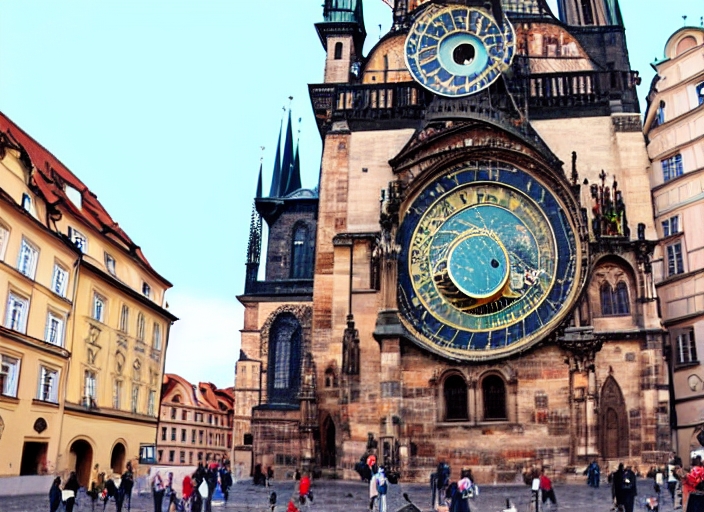 Astronomical clock and Tyn cathedral in Prague on Old Town Square